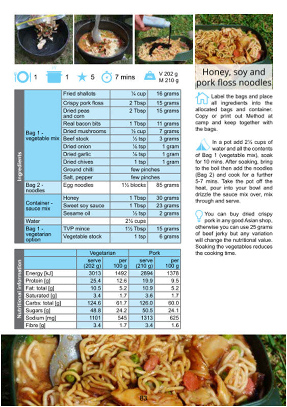 The book has loads of nutritional advice and heaps of recipes that are easy to prepare in minutes with simple ingredients from your pantry. The recipes are simple to cook out on the trails and they all taste great (soul food).